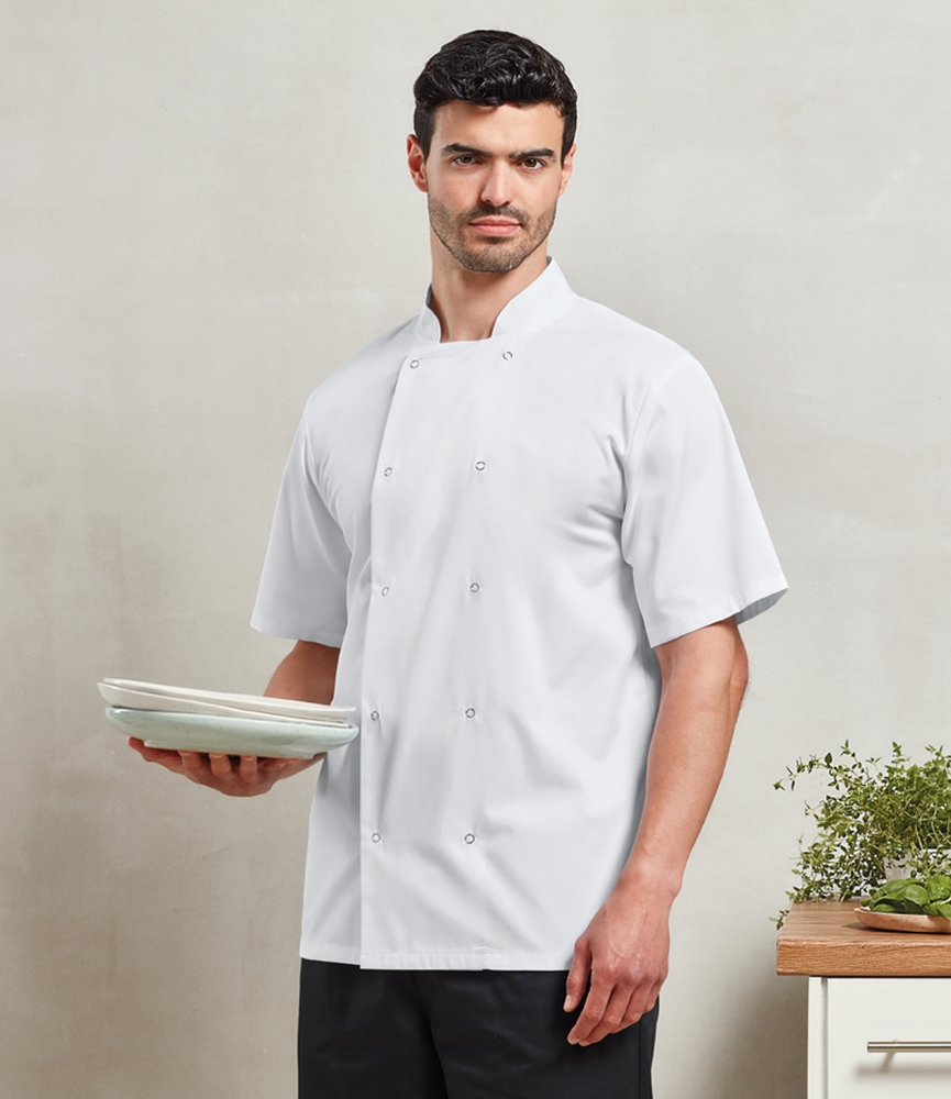 Premier Unisex Short Sleeve Stud Front Chef's Jacket