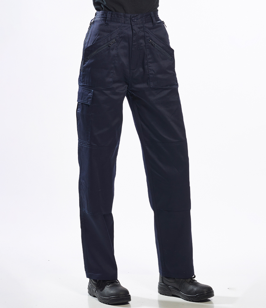 65% polyester/35% cotton kingsmill fabric. UPF rating of 50+. Part elasticated waistband. Belt loops. Zip fly with button over. Multiple utility pockets including side, rear and thigh pockets. Knee pad pockets. Branded tab on front waistband.