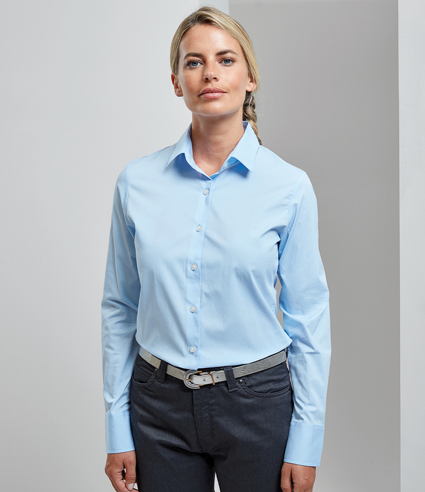 Premier Ladies Long Sleeve Stretch Fit Poplin Shirt