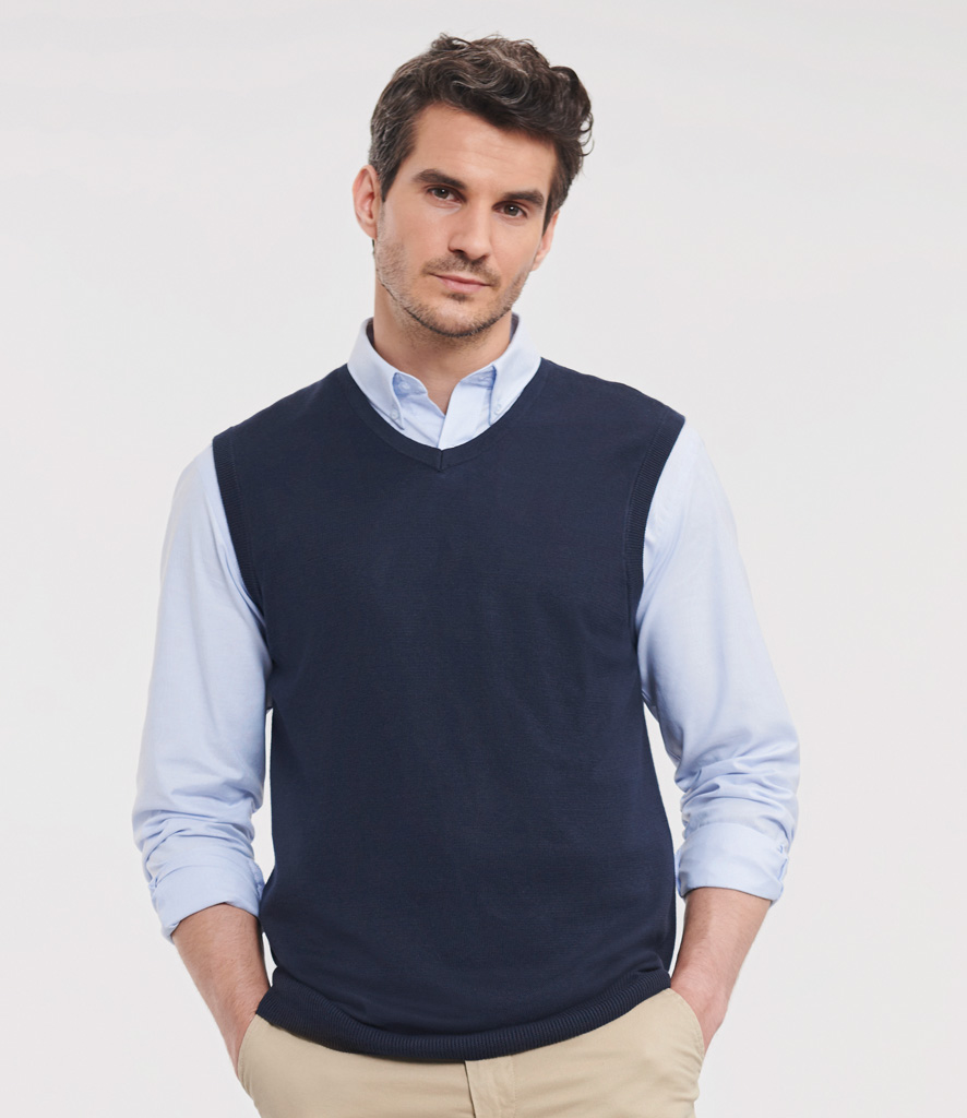 Russell Collection Sleeveless Cotton Acrylic V Neck Sweater